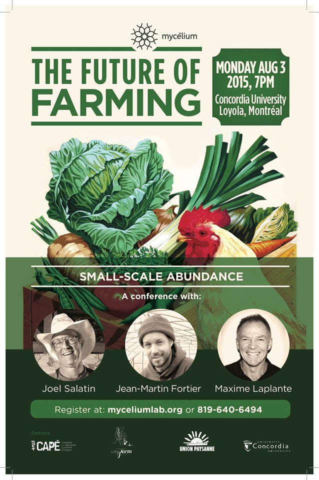 Joel Salatin (Polyface Farm), Jean-Martin Fortier (The Market Gardener) and Maxime Laplante (Peasant Union) we will explore the potential of small-scale farming to create farms that are both profitable and ethical.