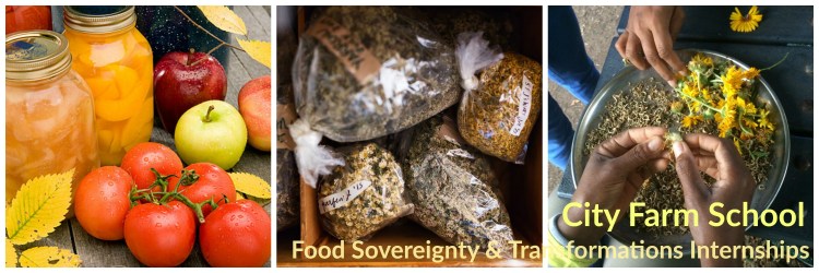 The Food Sovereignty & Transformation Session lasts for 3 months and is the third and final component of our City Farm School (CFS) Internship Program. Beginning September 4th and ending November 11th, this session focuses on harvest and transformation techniques, how to preserve what you grow, how to use gardening and growing as a source of community engagement and what is happening locally and globally in terms of food sovereignty and systems. It takes place in the downtown Concordia Greenhouse located at the top of the Hall Building and at the NDG farm at the Loyola Campus.