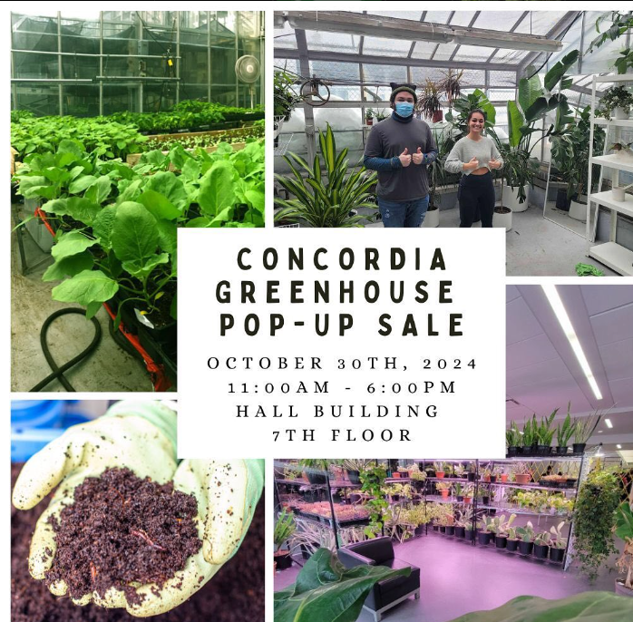The Concordia Greenhouse will be having a pop-up plant sale fundraiser on the 7th floor of the Hall Building on Wednesday, October 30th, from 11:00 AM to 6:00 PM. We will be selling house plants, worms for vermicomposting, small terrariums, and more! Whether you’re a plant parent or just starting out, there’s something for everyone. All proceeds go towards ongoing projects in the Concordia Greenhouse.