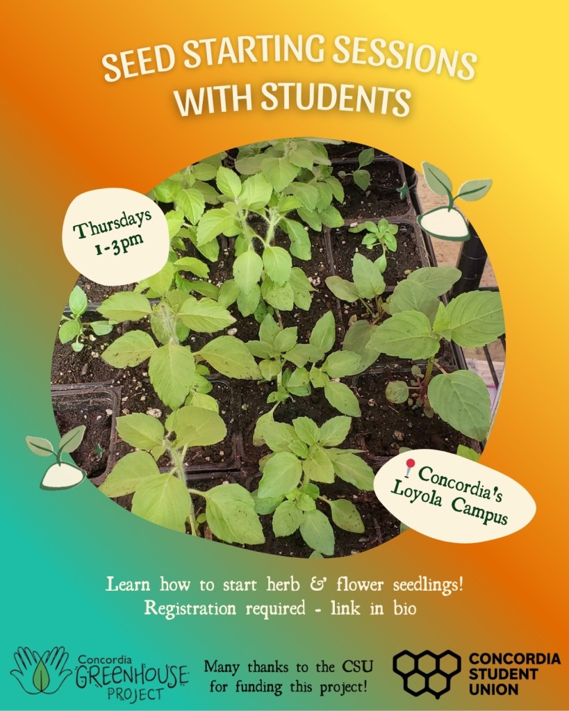 We’ve spent a lot of time humming and hawwing, but we’ve finally decided to bring back our Epic Seedling Sale on May 22nd! Through the hard work of our Garden Group friends out at Loyola (Co-op Cultivaction, Hamidou Horticulture, mind.heart.mouth, and City Herbal Apprenticeship) you will be able to find a wide variety of seedlings for your balcony gardens, your yards, and maybe some guerrilla gardening. — these gardens will also be looking for volunteers in May so keep and eye out.