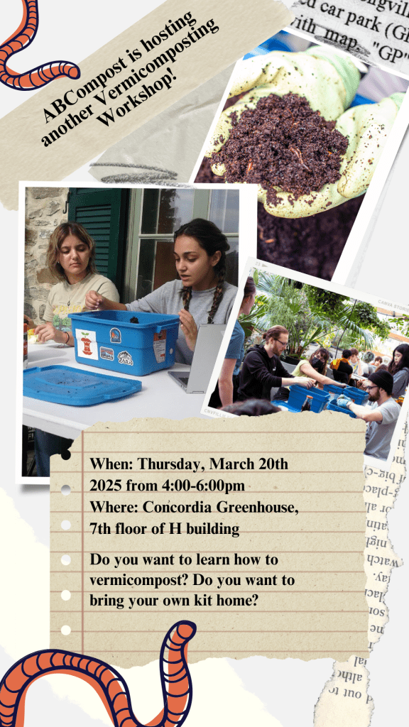 The Concordia Greenhouse Project is excited to welcome ABCompost under its umbrella! Founded through Concordia’s Zero-Waste program, ABCompost is a student-led group that runs vermicomposting workshops, processes food waste from campus providers like Le Frigo Vert and the People’s Potato, and manages composters at Loyola campus. This partnership will help ABCompost expand its educational initiatives, launch the Hungry Bin Project, and strengthen the Greenhouse’s role in food waste diversion and urban composting.